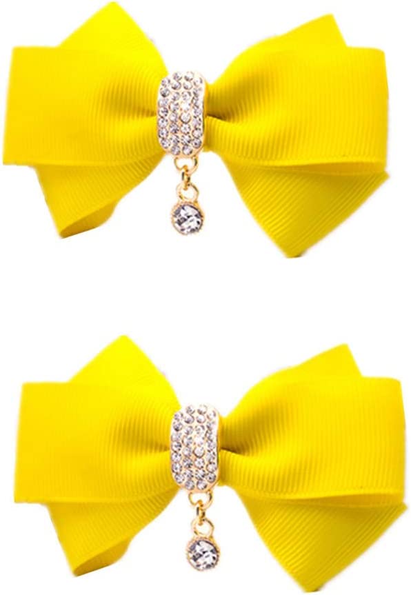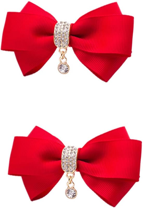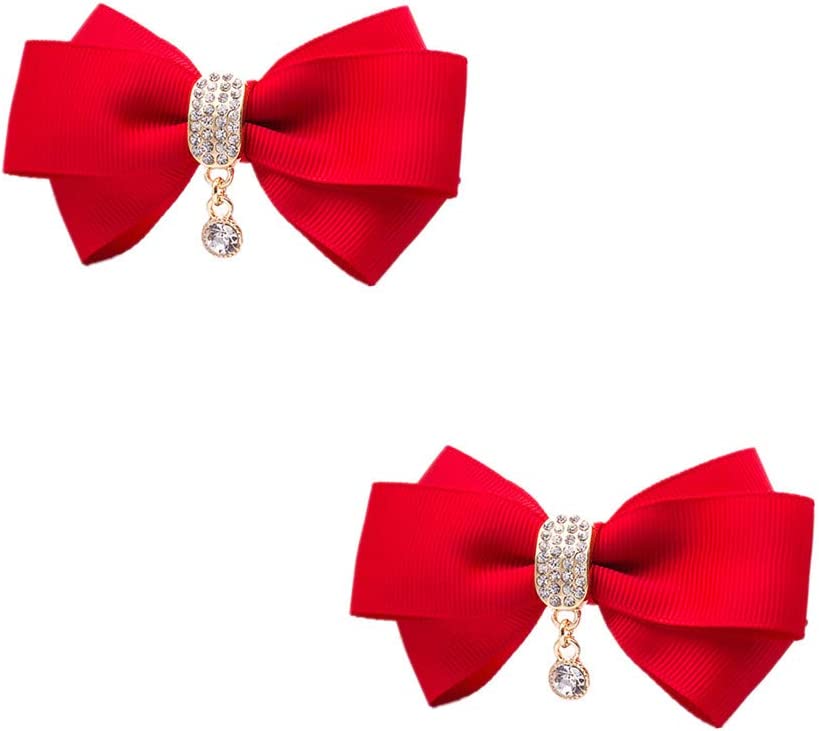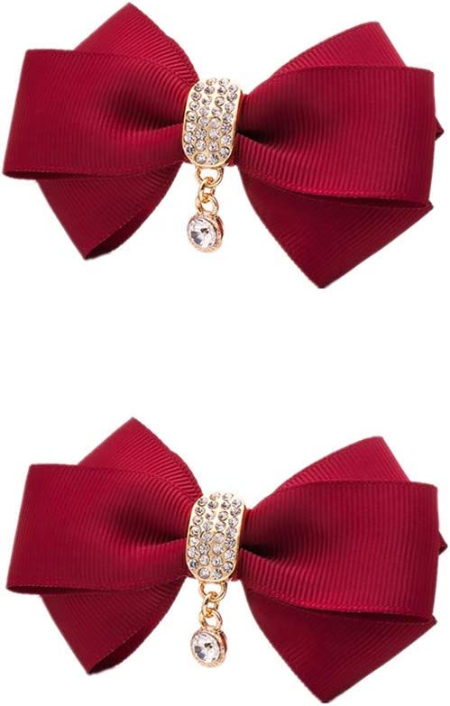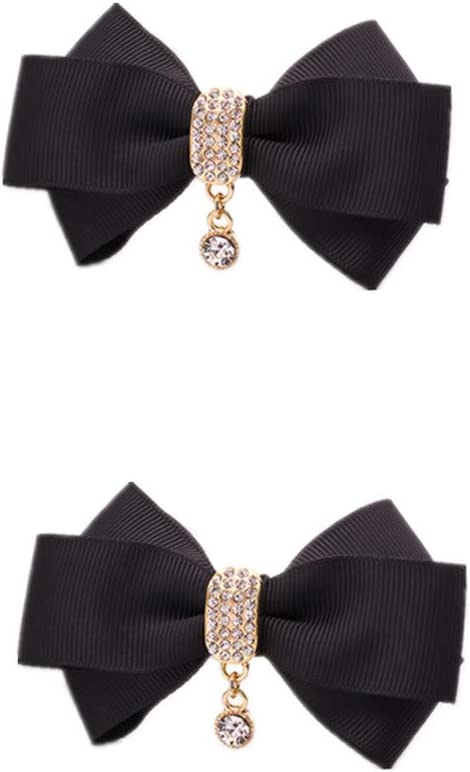Rhinestone Crystal Dangle Center Ribbon Assorted Color Bow Shoe Clips Pair Removable Shoe Buckle (Black)