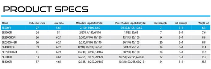| Included Components | Shimano SE4000XGFI Sedona 4000 SizeSpinning Reel 4 BB, 6.2:1 GR |