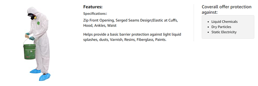 - The Disposable Microporous Protective Coverall available individually in sizes from XL through 2XL