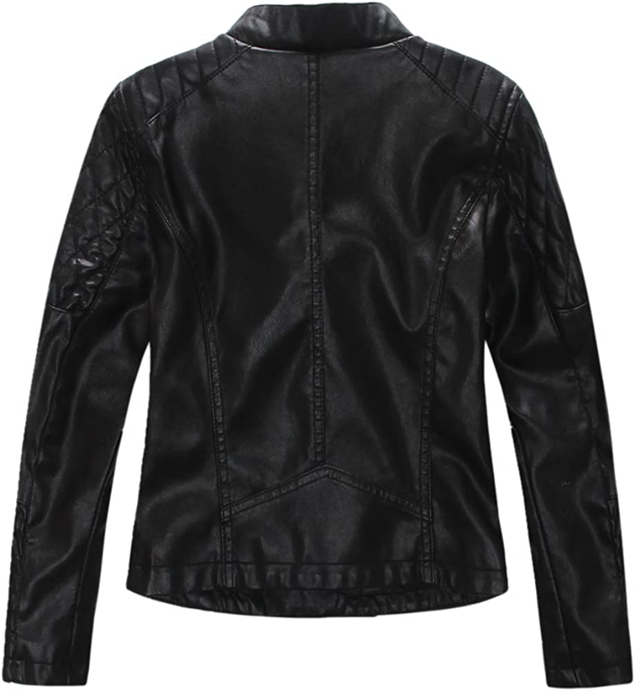 Grils Moto Bomber Faux Jackets, Zipper Closure, Pockets on Both Sides of The Waist, Stand Collar, Short Waist Style.