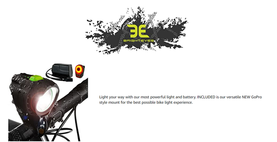 BRIGHT EYES 1800 Lumen Bicycle Light Set - The Stamina - Super Bright Headlight w/Quad Cree Technology and Light Weight Military Grade Nylon Shell - Free USB Rechargeable Taillight