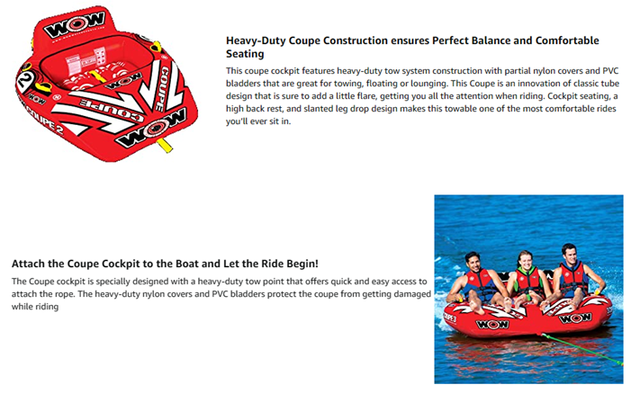 | Model Name | WoW World of Watersports 15-1030 Coupe Cockpit Towable, Inflatable, 1 or 2 Person |