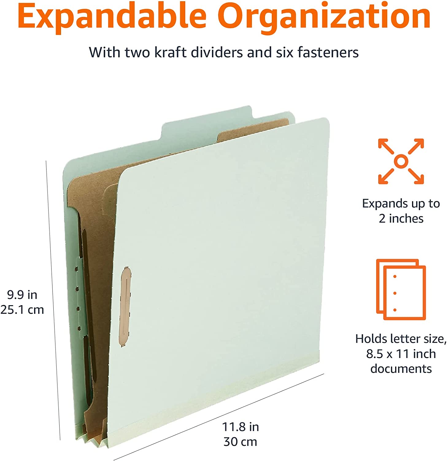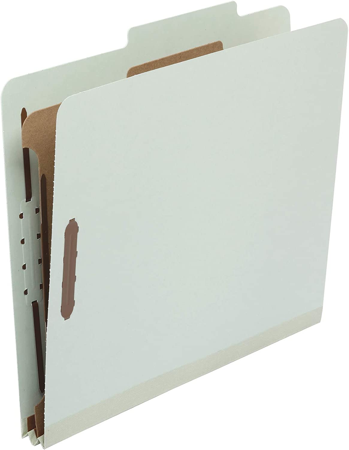 Amazon Basics 10-Pack Letter Size Pressboard Classification File Folders with Fasteners, Dividers, 2” Expansion - Green