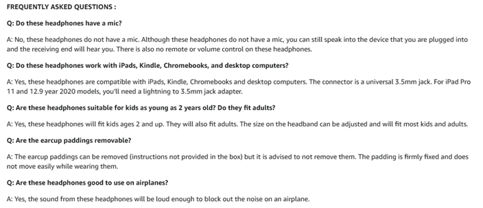 - On-ear headphones has padded soft cushions with a soft touch finish. Adjustable headband for a perfect fit, and a lightweight design for kids age 3 and up. Foldable design for a more compact and easy storage. The cord is a 5 feet long nylon braided cable. Designed for kids, girls, boys, children, toddlers, home/online school, training.