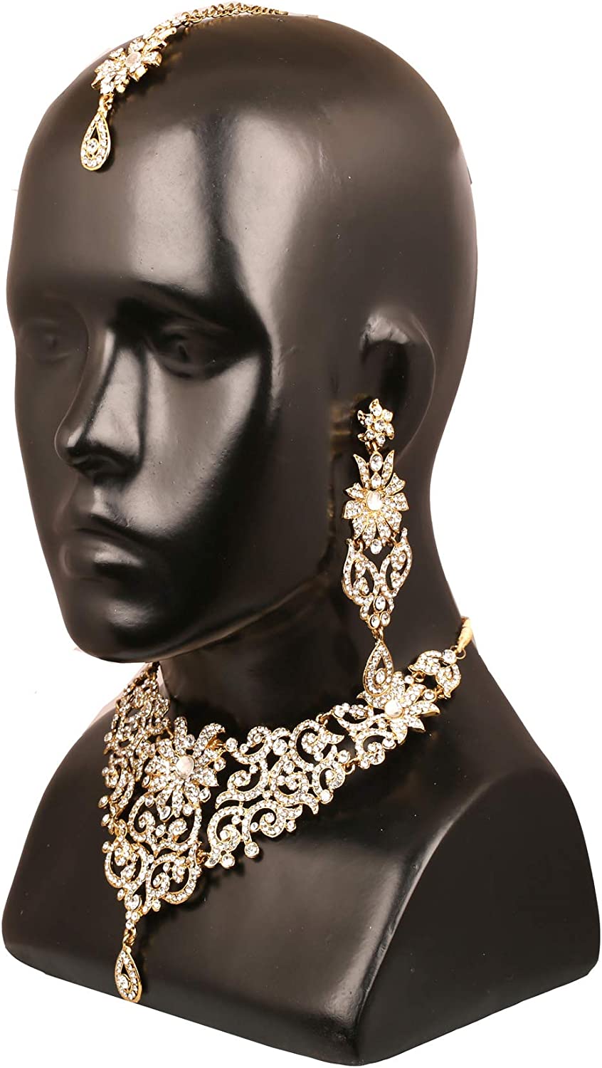 Touchstone Indian Bollywood Gorgeous intricate Workmanship Sparkling White Colorful Rhinestone crystal wedding Designer Jewelry Necklace Set In Gold or Silver Tone For Women.