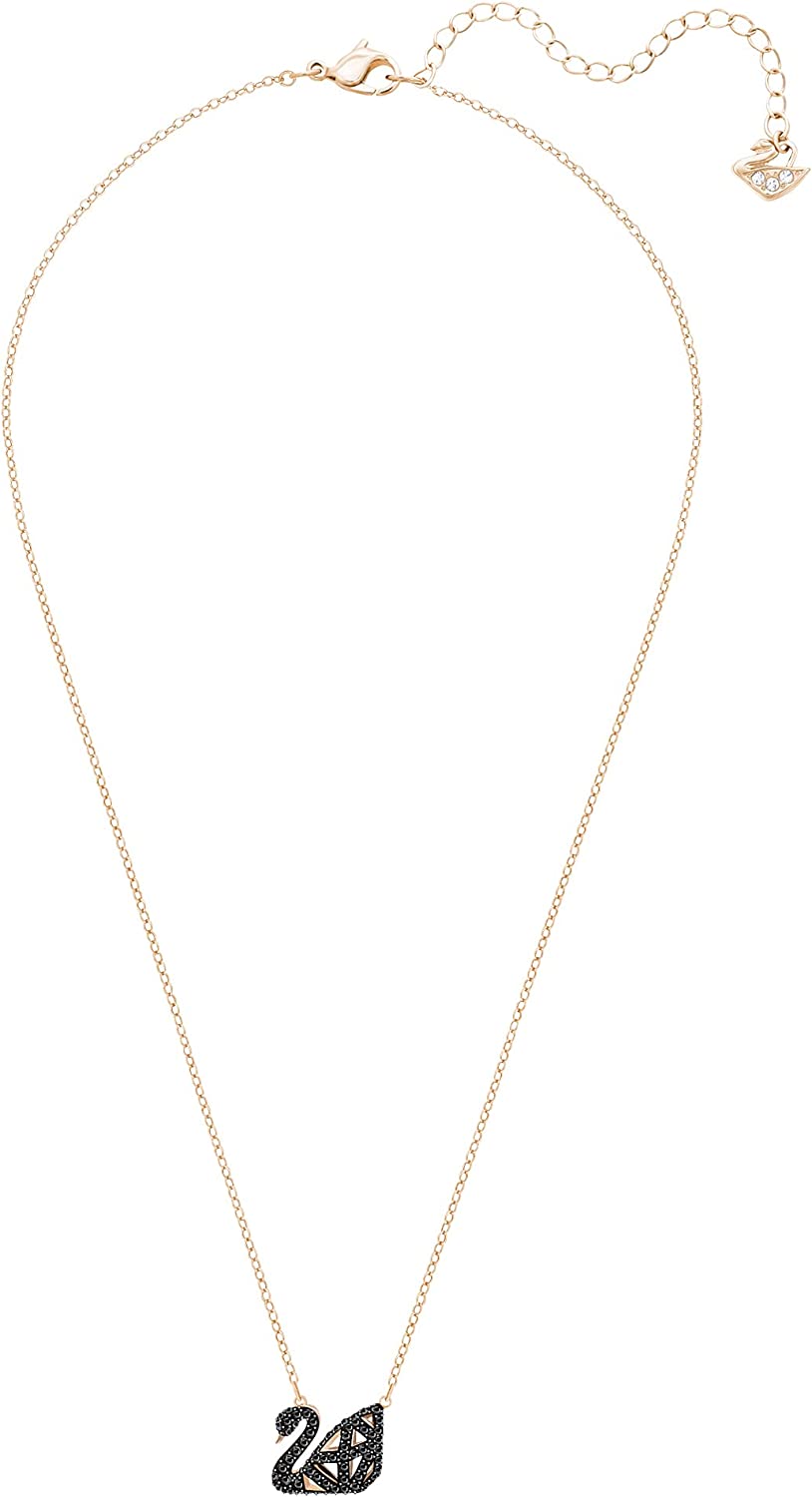 Items delivered: (1) Swarovski Facet Swan reversible pendant necklace for women, with black and white crystals on a mixed metal finish chain, length 14 7/8 inches, complete with Swarovski necklace box