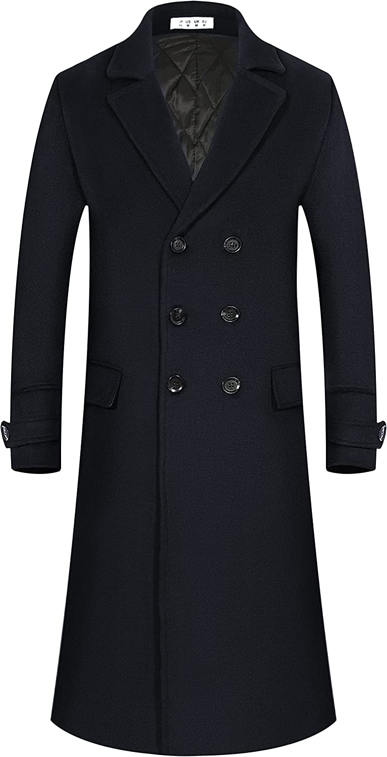 WINTER WARM LONG COAT--Mens wool trench coat is made of 80% higher density premium Merino wool combined together with 20% durable polyester fiber perfectly, lining quilted with silk cotton to enhance the effect of wind resistance, keep warming and breathability.