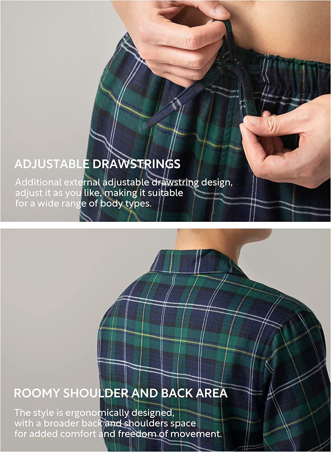 Premium Cotton: Mens sleepwear set with longer loops to enhance absorbency and performance