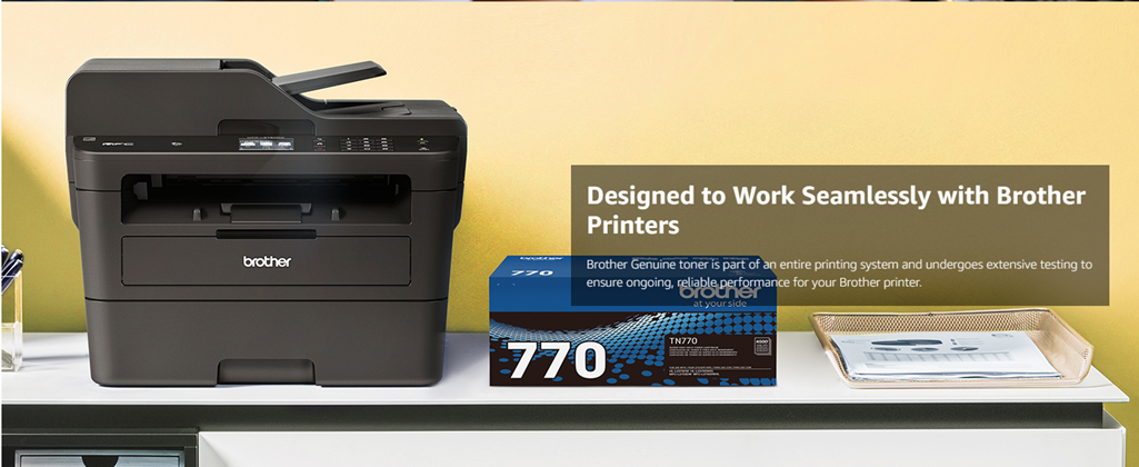 Brother Genuine TN770 monochrome laser toner cartridge delivers consistent, professional mono laser print quality with up to 4,500-page yield. Brother Genuine toner is intelligently engineered to work seamlessly with your Brother Printer to reliably produce crisp prints that withstand the test of time. Only Brother Genuine toner will provide print results that you can be consistently proud of. Using Brother Genuine supplies delivers peak performance and high-quality prints. Brother offers an environmentally responsible way for customers to recycle Brother Genuine cartridges at end of life.For use with: HLL2370DW, HLL2370DW XL, MFCL2750DW, MFCL2750DW XL.