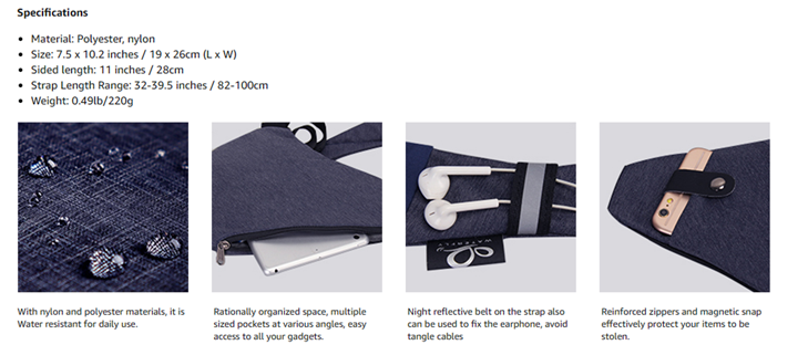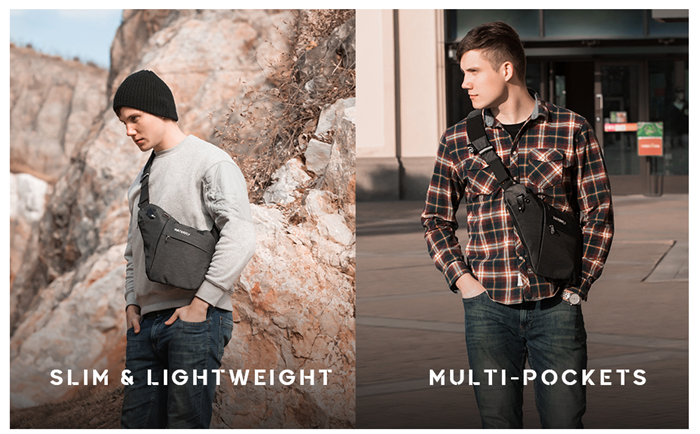 Unique Design: There is a small pocket on the strap for cards storing and a reflective belt for easy seen in the dark; This sling bag is slim enough to concealed carry under your coat or suit