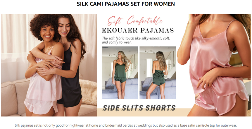 • Ekoauer silk cami pajamas set are luxuriously stylish & soft to the touch! If it is wrinkled, you can steam it before you wear it. Due to the different resolutions of the display screen, please allow slight color differences, thanks.