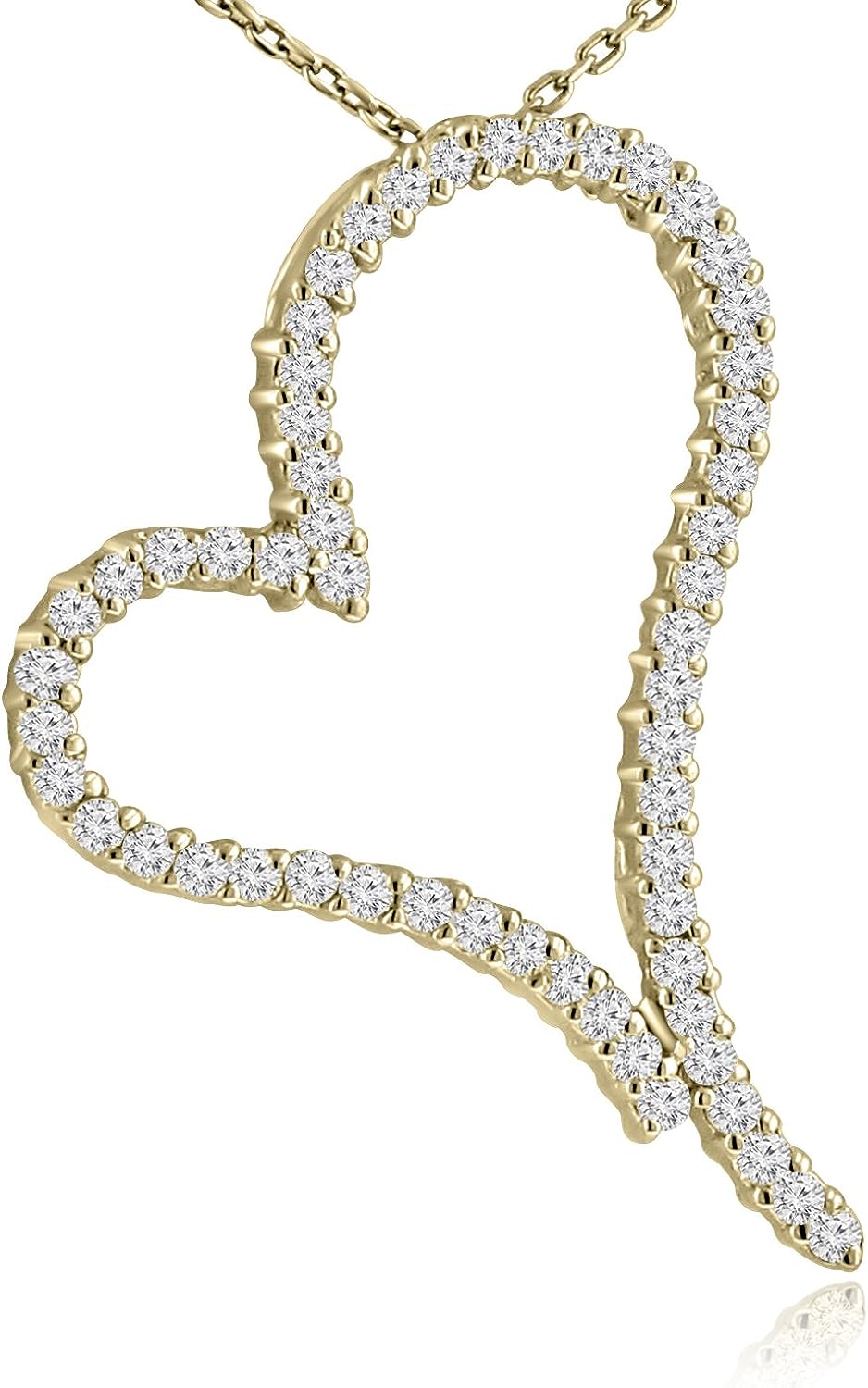 Madina Jewelry 1.30 ct Round Cut Diamond Heart Shape Pendant Necklace (G Color SI-1 Clarity) in 14 kt Yellow Gold