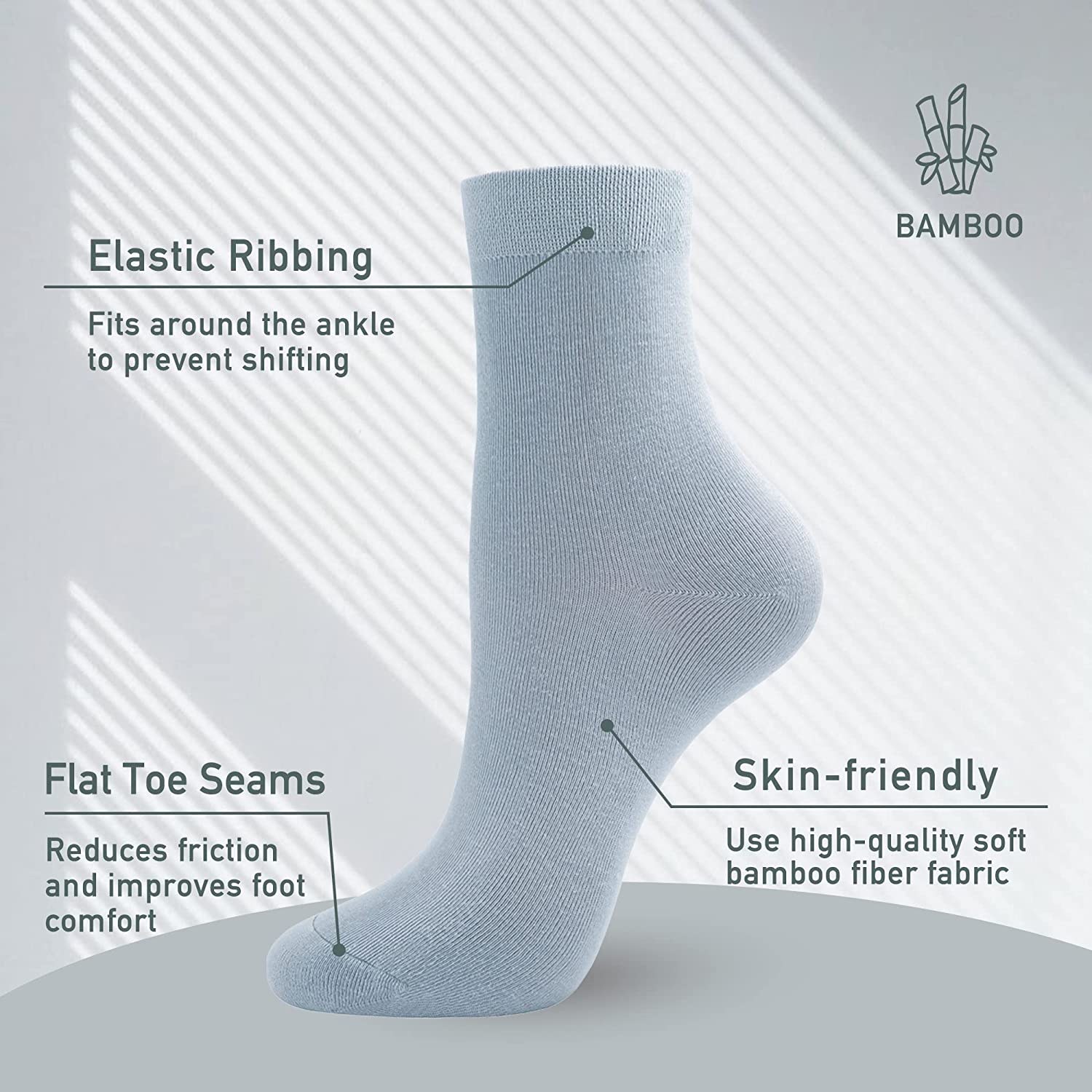 • ★ANTI-ODOR & BREATHABLE : Forget the smell that accompanies sweat on the foot. Each element of bamboo fiber helps to prevent odor through wicking, absorbing the moisture using the bamboo quinone that is present within the material.
