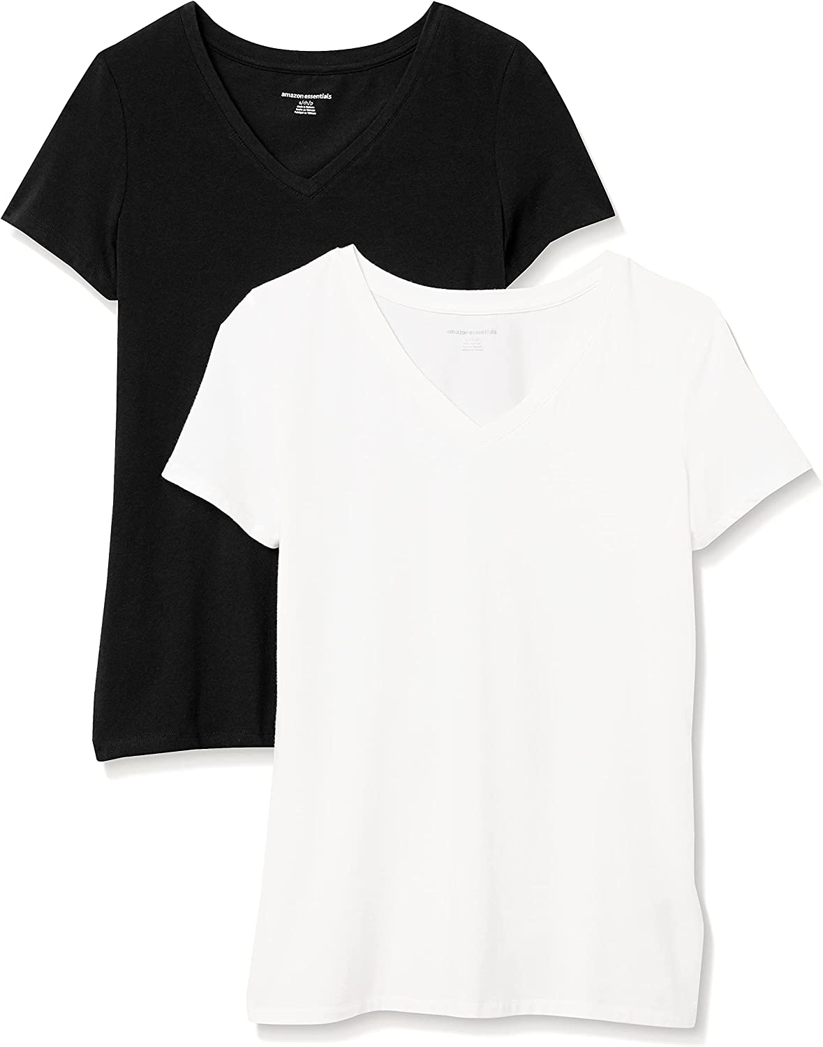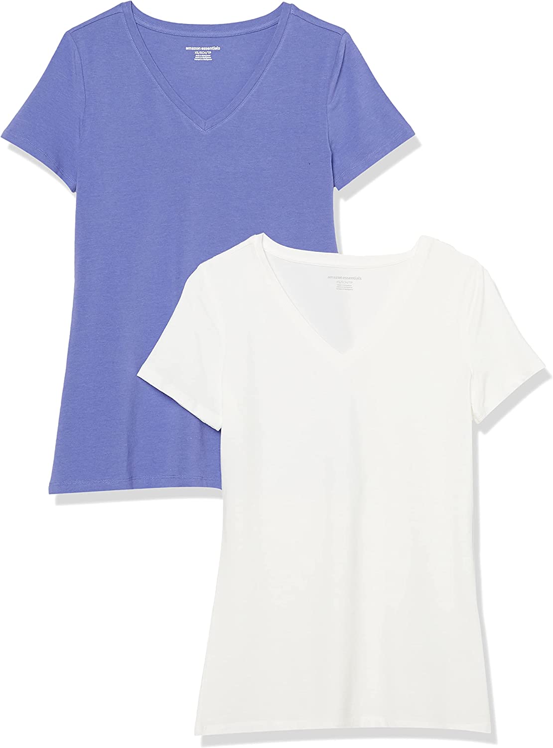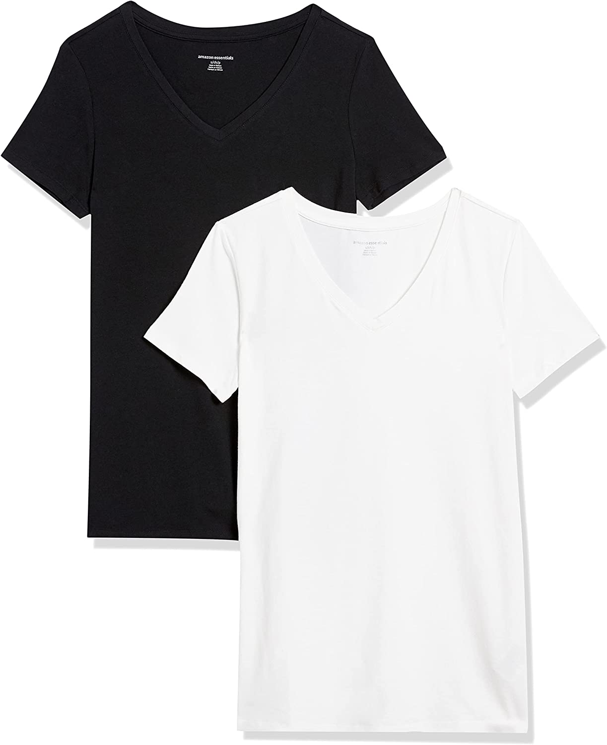 Amazon Essentials Women's Classic-Fit Short-Sleeve V-Neck T-Shirt, Multipacks