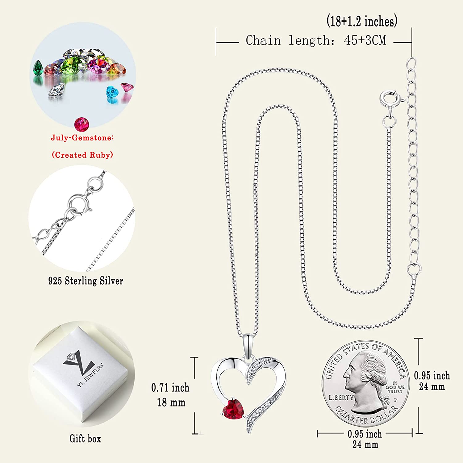 ❤️ YL DESIGN - This birthstones heart necklace with "red heart" represent “Passionate, Lively”