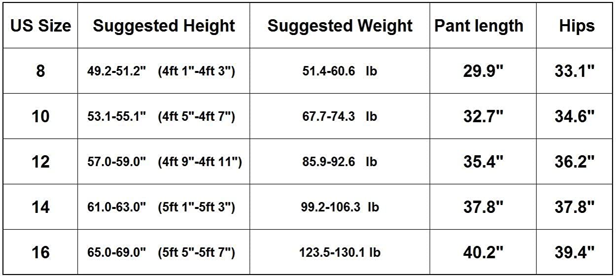 CN Size 170=Size 16 Suggested Height 5ft 5"- 5ft 7" Suggested Weight 123.5-130.1 lb