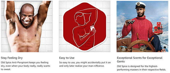 | Description | Long-lasting scent with sweat and odor protection. | One spray keeps you fresh all day. | Drop-kicks dirt and odor. | Provides 24-hour odor and sweat protection. | 24-hour odor protection. |