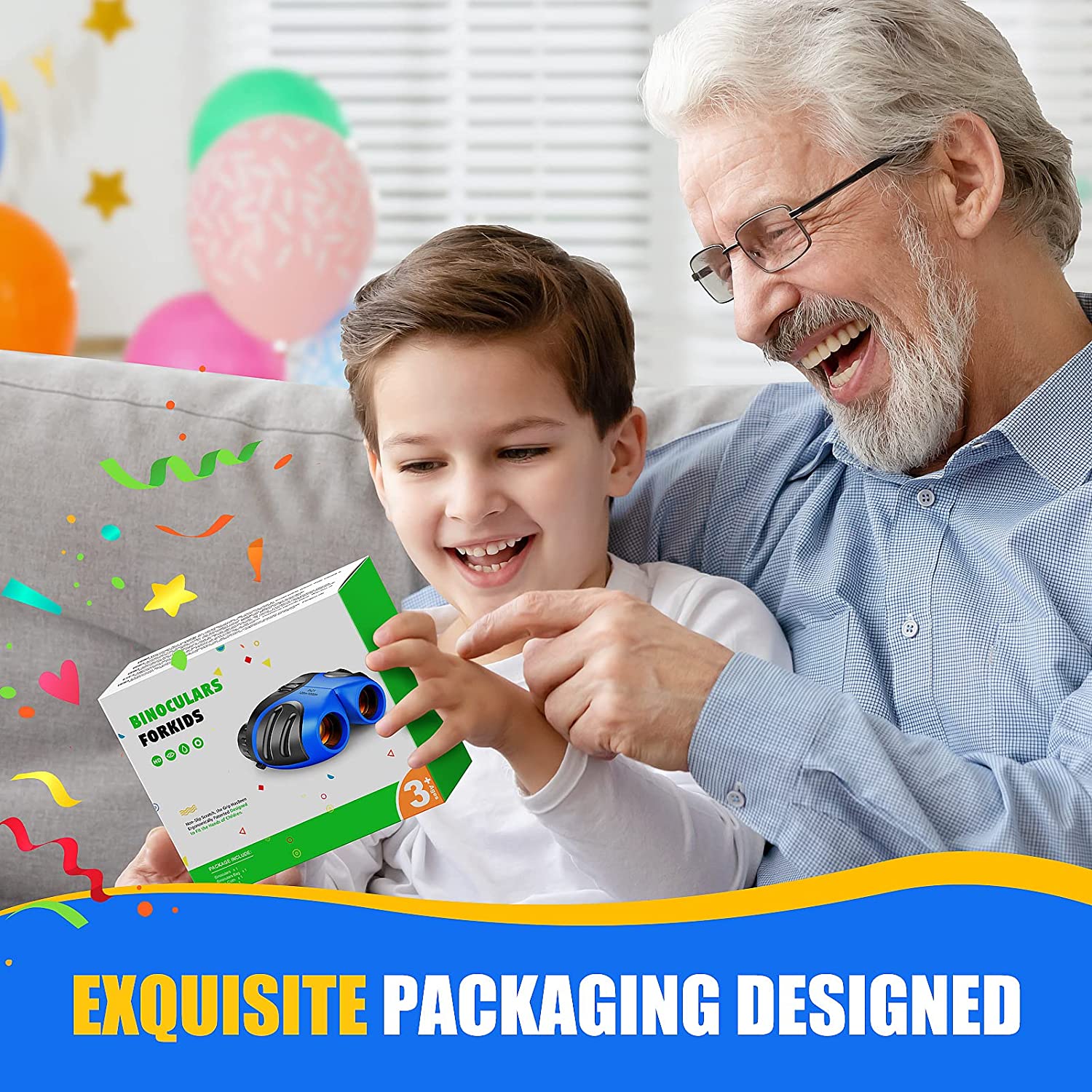 • Real Binoculars for Kids: This product has a super magnification of 8X with an amazing view. The binoculars can be adjusted to easily match the eye distance gap for each child. Great for bird watching, learning, hunting, theaters, boat rides, hiking, traveling and enjoying the wilderness!