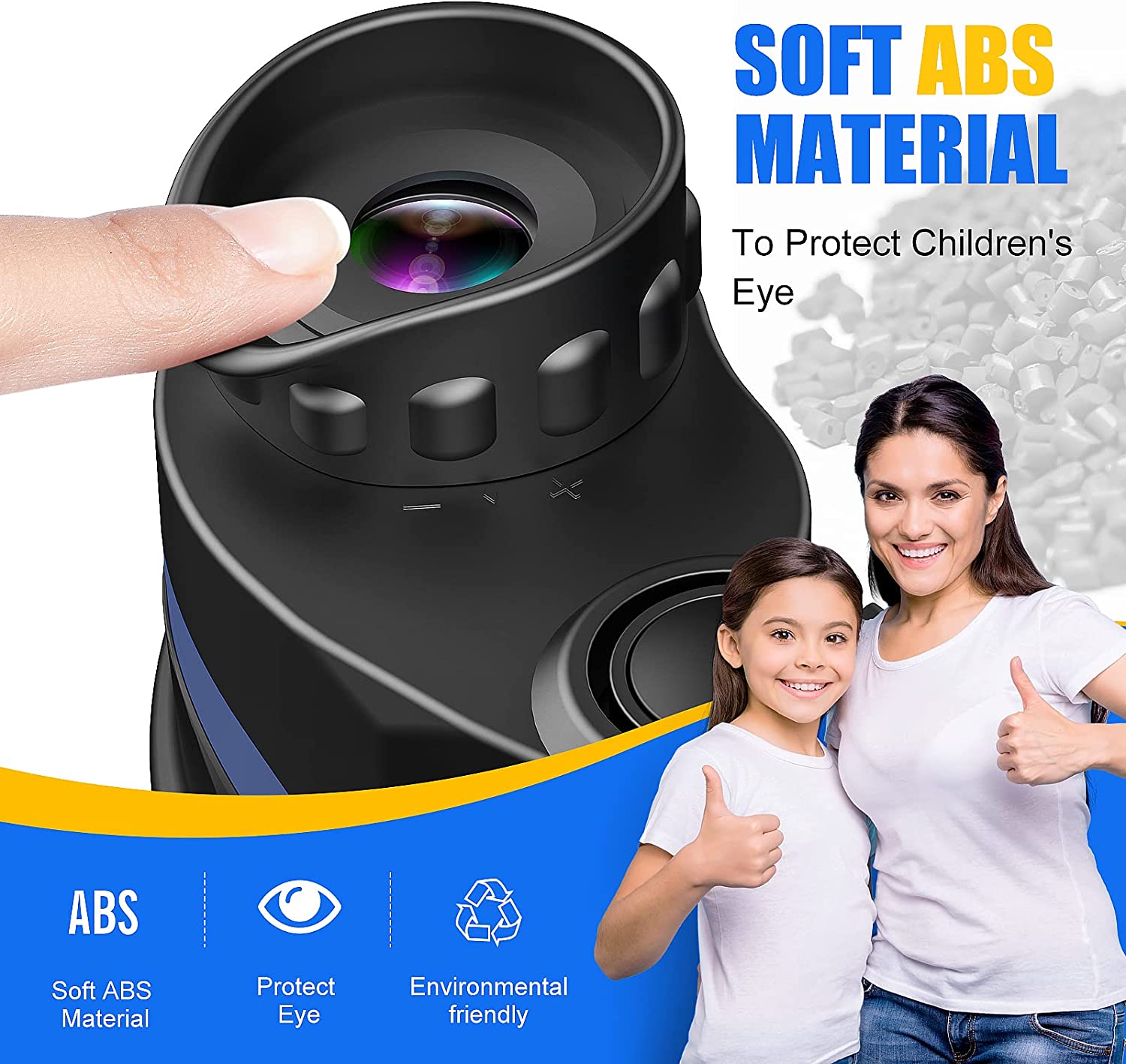 • Super Safety: Soft rubber surrounded eyepieces are included for eye protection so children don't hurt their eyes or face. Other brands do not have this safety feature! There is extra coating surrounding the eyepieces compared to other brands and provides better protection of the lens during falls.