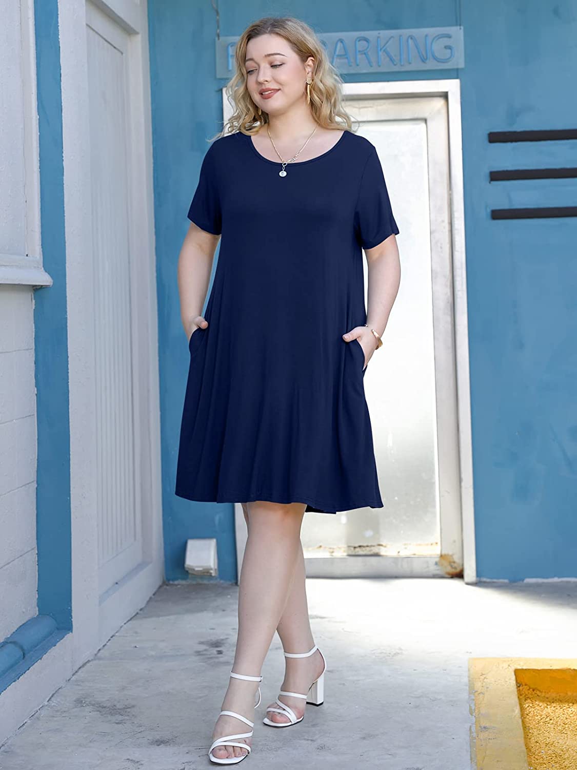 【Classic Design】Stay comfortable and stylish with JollieLovin plus size casual dresses. Featuring a scoop neck, two side pockets, A-line cut, and above-the-knee length, these dresses are perfect for any occasion. Wear them in Spring and Summer or pair them with a coat in Fall and Winter for a chic look.