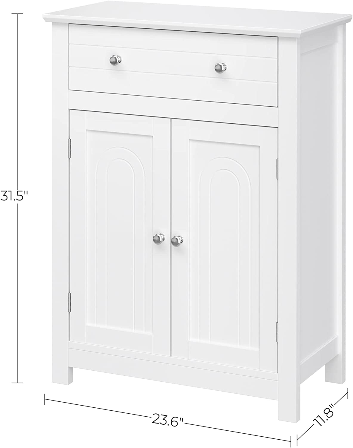 VASAGLE Bathroom Storage Cabinet Free Standing, with Drawer and Adjustable Shelf, Kitchen Cupboard, Wooden Entryway Storage Cabinet, 23.6 x 11.8 x 31.5 Inches, White UBBC61WT