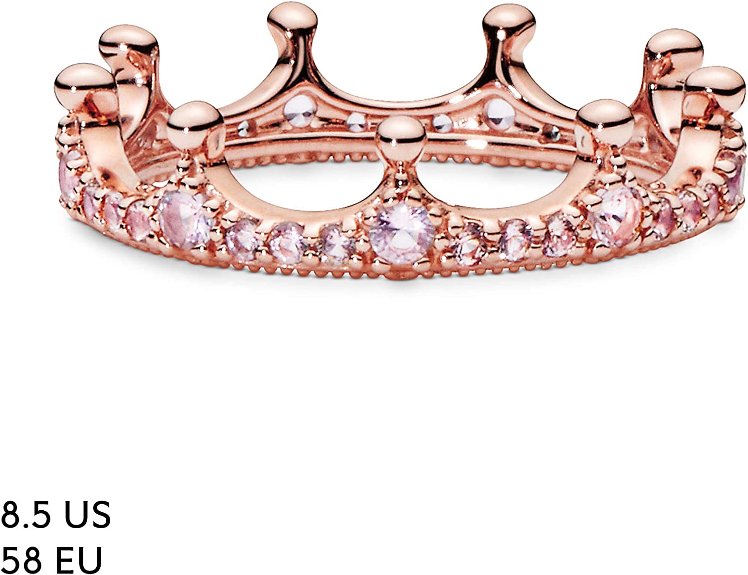 Stunning Crown Ring Design: Give your fingers the royal treatment with this pretty pink crown ring; Crafted in Pandora Rose, a 14k rose gold-plated unique metal blend, this perfect piece features a regal crown design with pink cubic zirconia stones