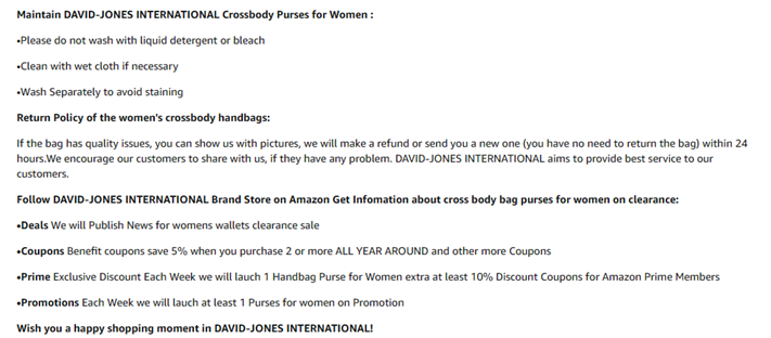 • BRAND:DAVIDJONES purses Designed in French since 1987.We sell Great stylish and versatile handbag purse for women and girls in more than 100 countries.Excellent craftsmanship and refined good quality leather like PU women purse.Decent quality handbags for women with affordable price.