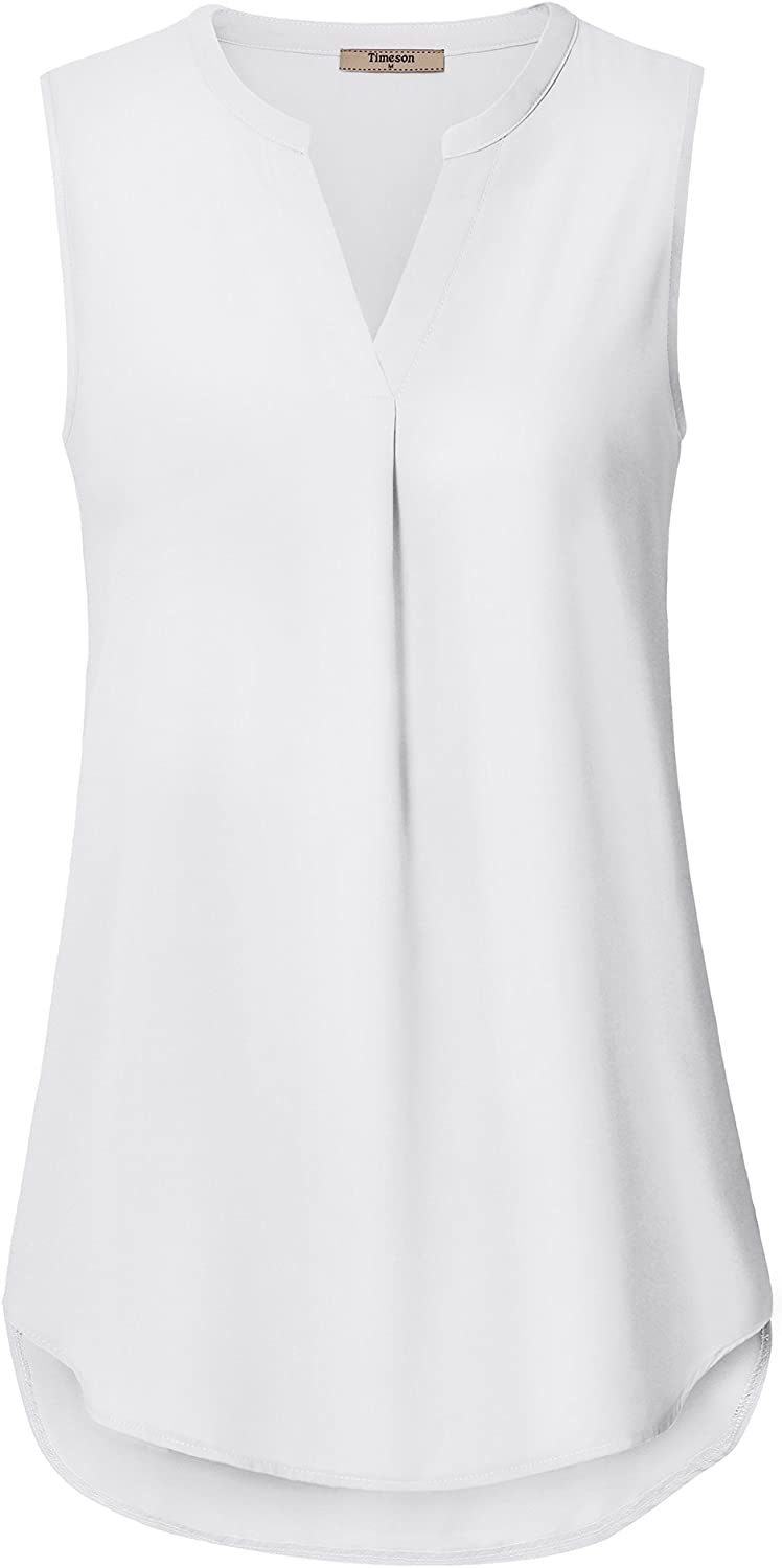Timeson Women's Chiffon V Neck Sleeveless Blouse Tops Office Work Shirts