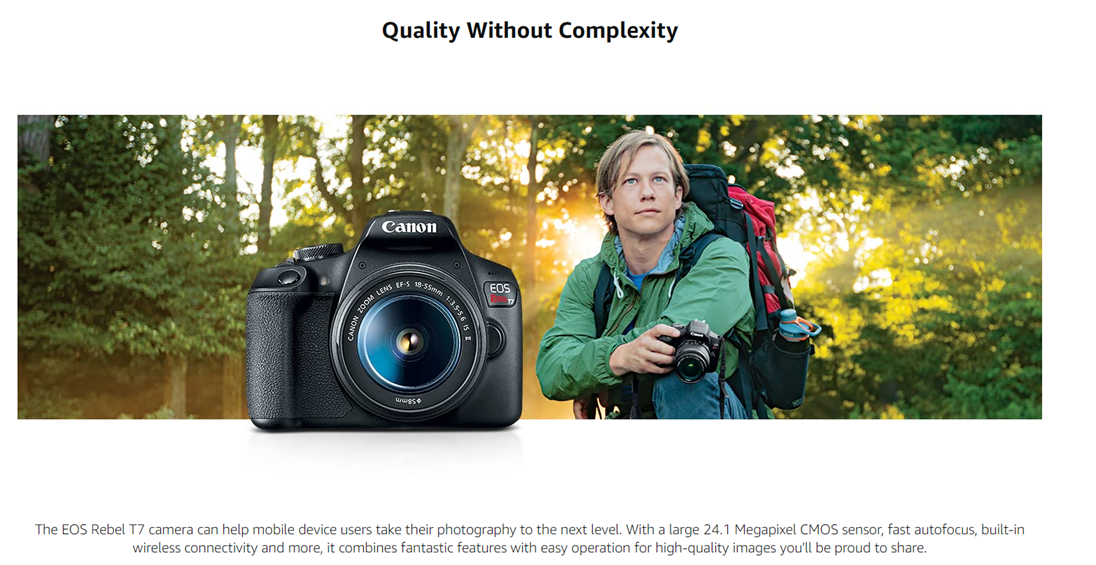 Canon EOS Rebel T7 DSLR Camera with 18-55mm Lens | Built-in Wi-Fi | 24.1 MP CMOS Sensor | DIGIC 4+ Image Processor and Full HD Videos