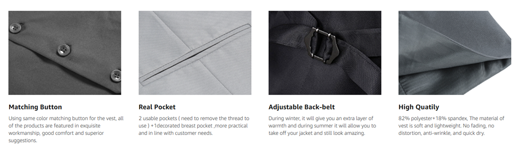 【Brand Exclusive Service】 We are committed to providing every customer with the ultimate positive buying experience! If there is any problem with our vest suit, so just get in touch and we’ll help you out. Such a high quality vest, making you handsome and elegant.