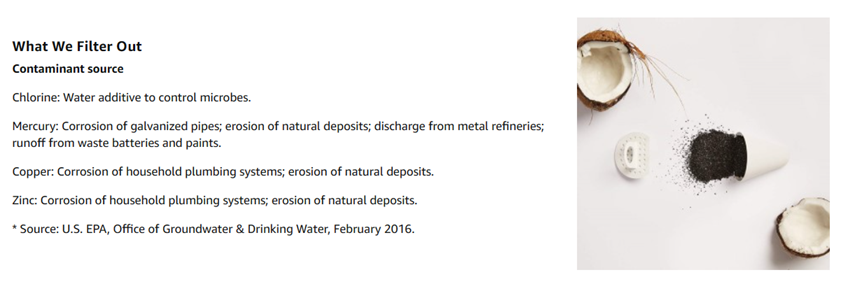 Feel good knowing the Soma filter only contains coconut shell carbon and a plant-based casing. No added chemicals.
