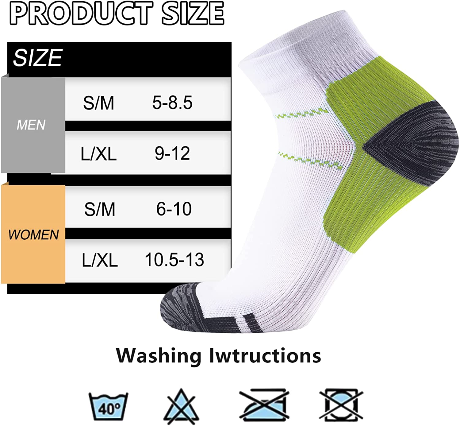 • ARCH SUPPORT - Targeted compression zones provide varying levels of support from moderate to extra firm. These are designed to promote blood circulation and oxygen flow and prevent cramping, fatigue, swelling. Relief from pain due to plantar fasciitis and foot injuries, Assistance with recovery after exercise.