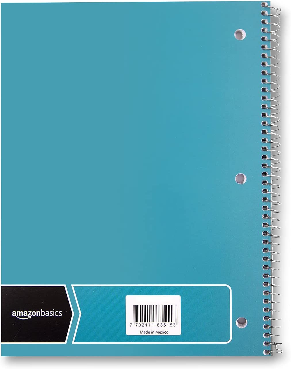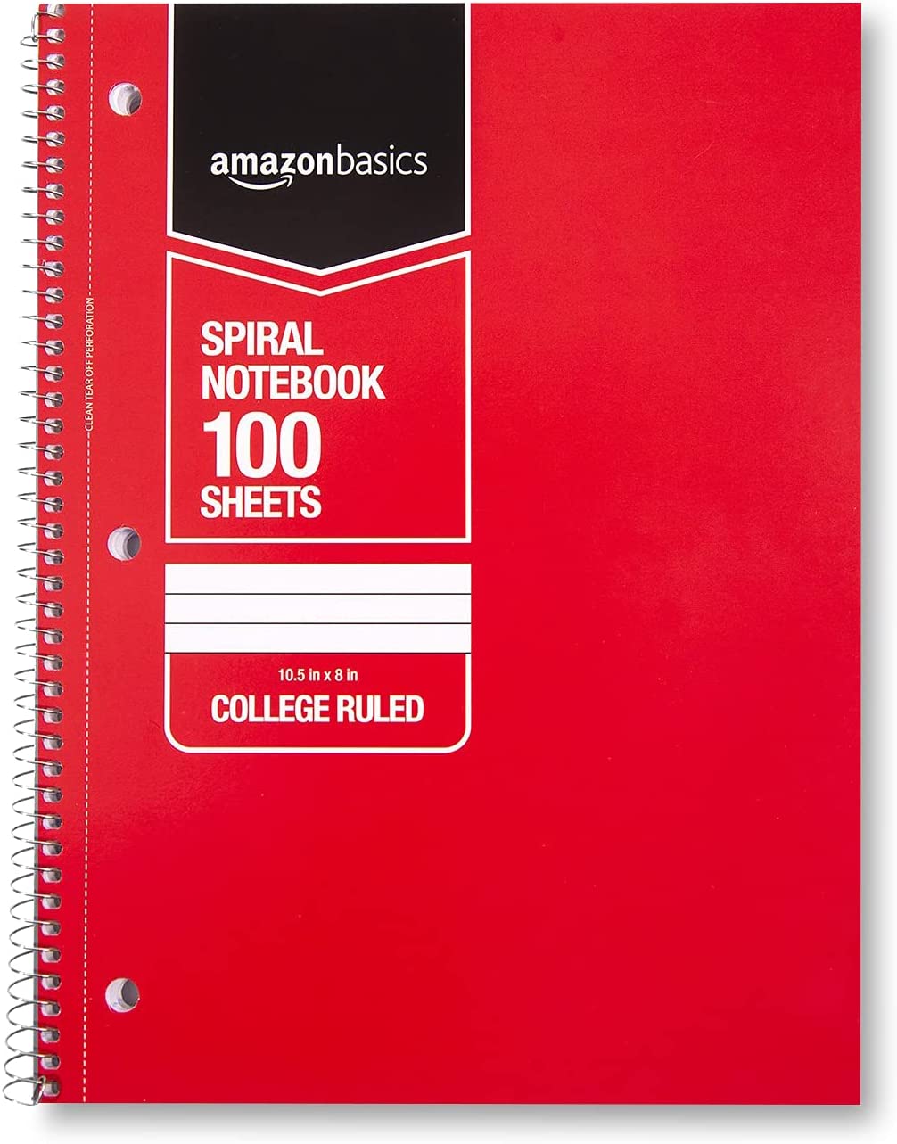 Amazon Basics College Ruled Wirebound Spiral Notebook, 100 Sheets - 5-Pack, Assorted Solid Colors