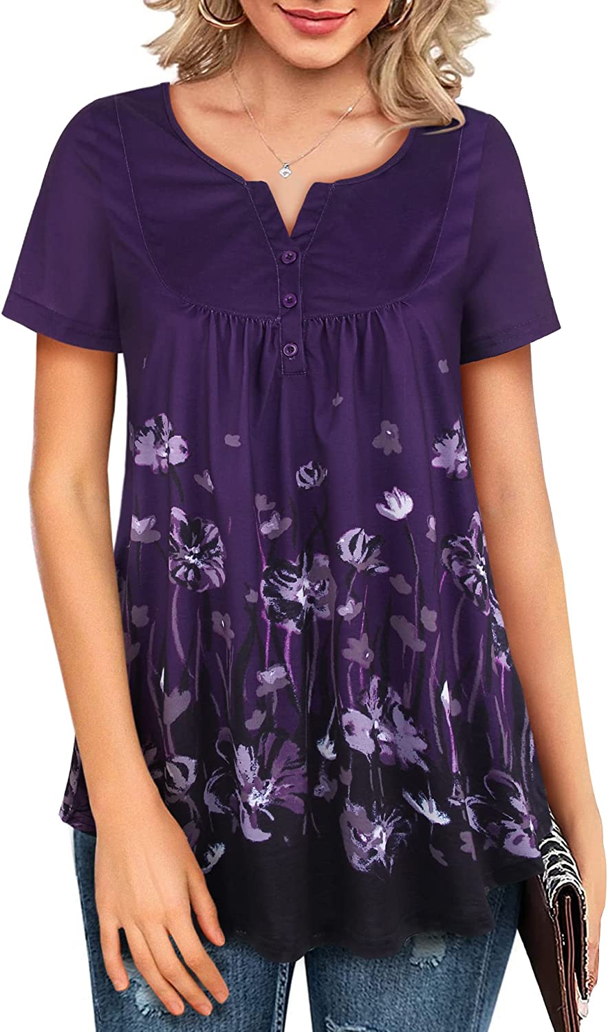 Features: Henley v neck,Button-up,Paisley pattern or solid color, cute front ruffle and flowy hem can perfectly modify the belly, good length can cover hips and easy to pair with leggings, pants and shorts etc, very casual, soft, lightweight and comfortable