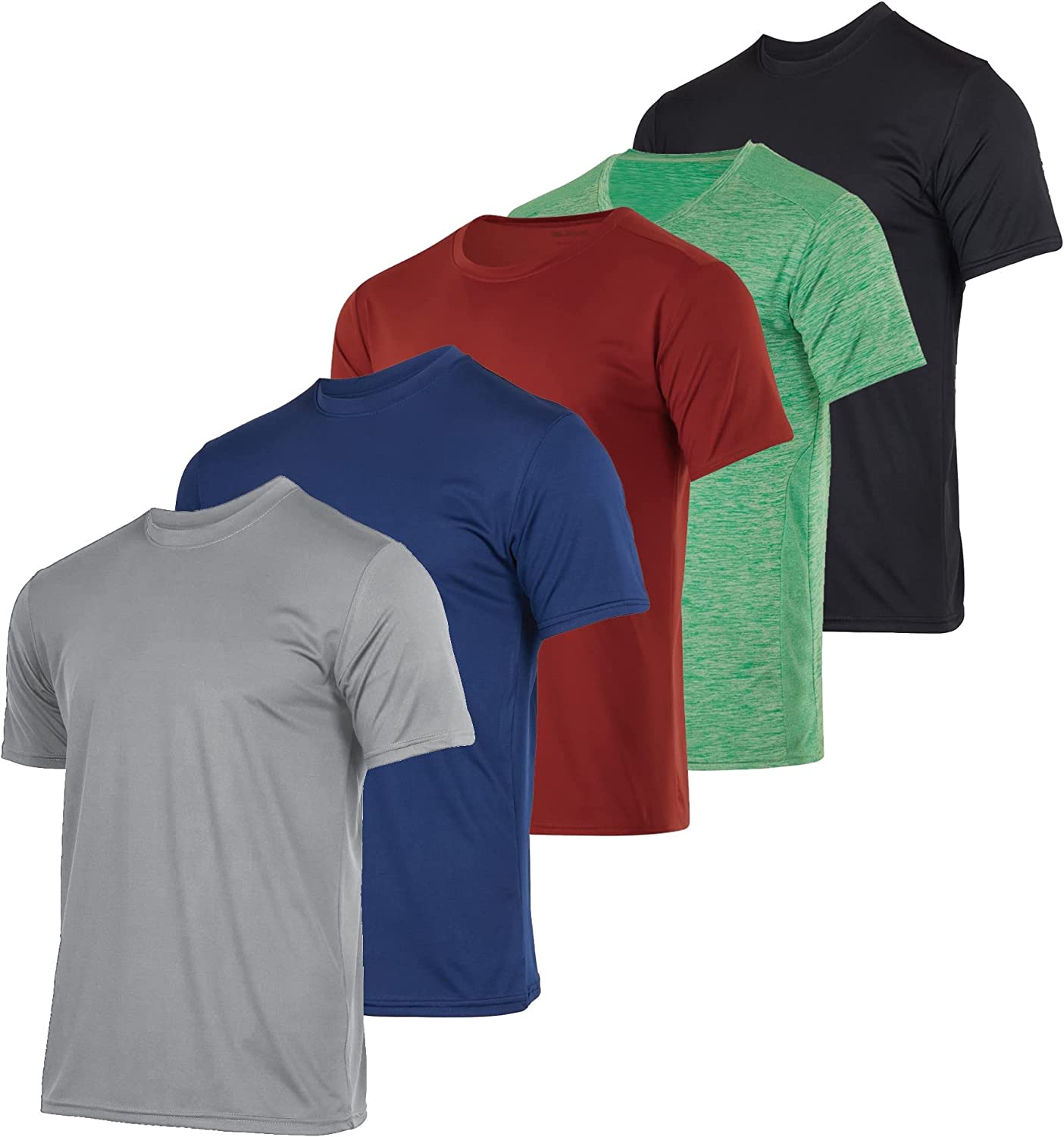 5 Pack: Men’s Dry-Fit Moisture Wicking Active Athletic Performance Crew T-Shirt
