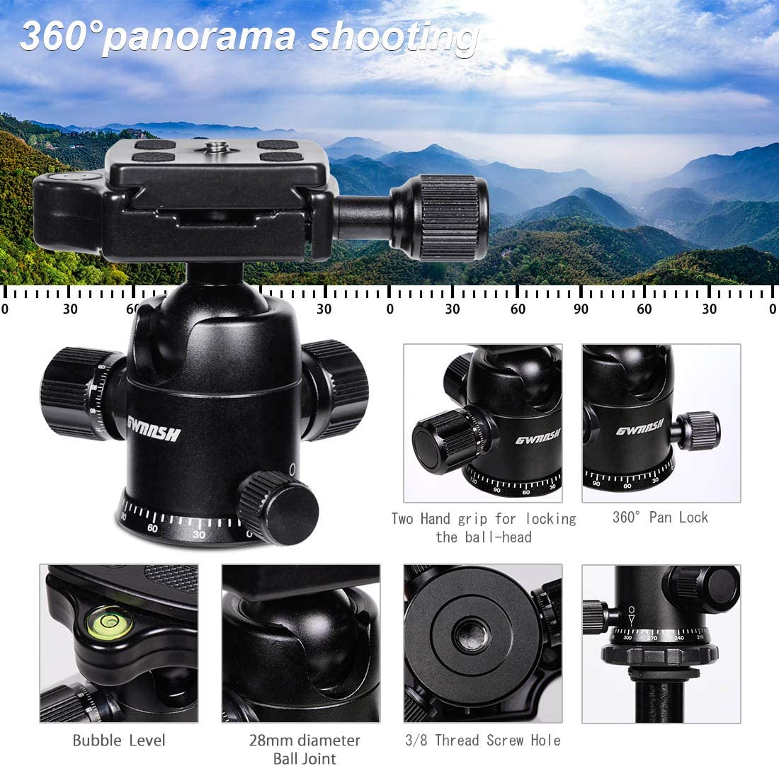 • 【FORM FOLLOWS FUNCTION】Perfect Balance and Quality Construction are the essential elements of a reliable tripod. Gwnnsh determines to provide a high standard, multi-function, fully compatible yet look and perform the same as professional class tripod at an affordable price plus more ….