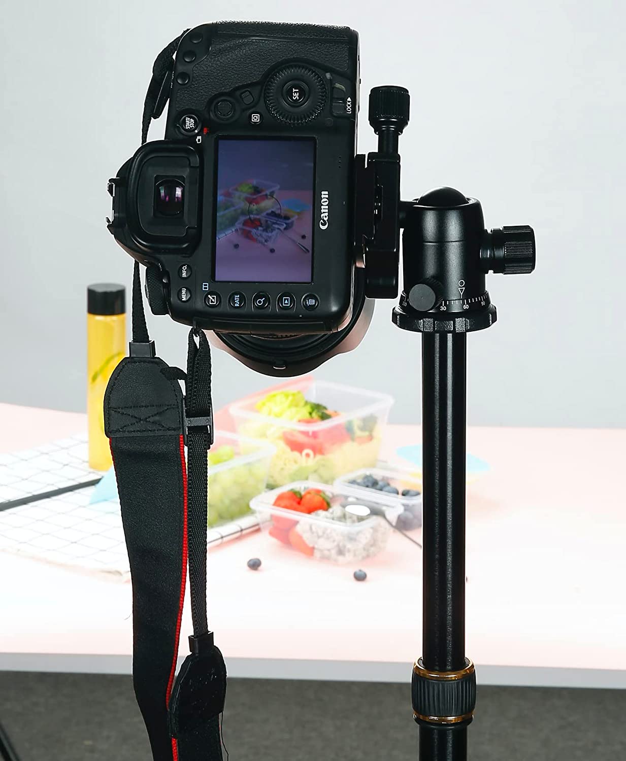 • 【MORE FEATURES】 Standard equipped with 360° Aluminum ball head swivel system to ensure smooth transition of panorama shot. The universal 1/4” release plate with built in level indicator is finely polished to fit with all standard threading DSLR models (Nikon Canon Sony, you name it) even mini digital camera. Our well balance tripod is also your in-home entertainment stand, phone, tablet, binocular, laptop, projector and more (separate mounts may required.) Perfect Companion for live streaming and recording.