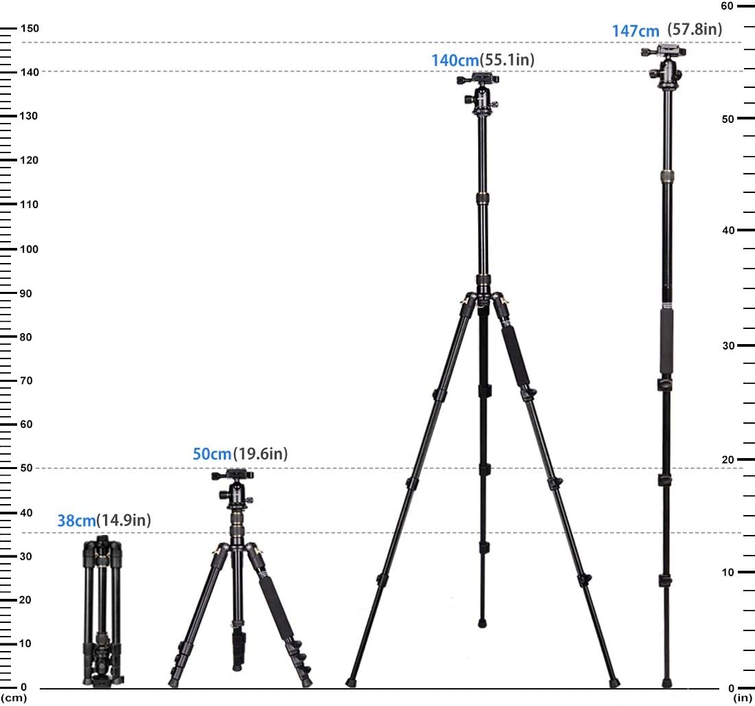 • 【2 in 1 MONOPOD TRIPOD AND MORE】 The retractable tripod with dual height adjustment knobs (shooting height from 20” to 55”) is specially engineered to withstand sudden impact best fits for outdoor activities. The front leg could convert into an independent Monopod (max. height 58”) to meet the special challenges of limited space. The Invertible Center Column allows low angle marco photography, thanks to the fine tune knob, setting the perfect angle for close up shot is simply a walk in the park.