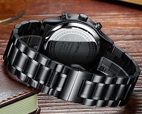 CRRJU Men's Fashion Stainless Steel Watches Date Waterproof Chronograph Wristwatches,Stainsteel Steel Band Waterproof Watch