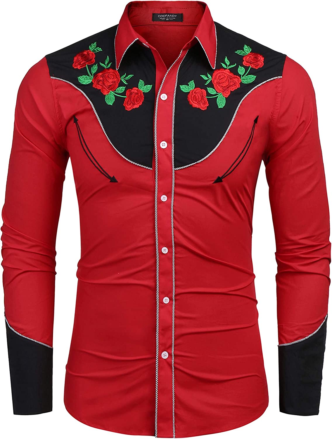 • OCCASION - Fashionable cowboy style button shirts are suitable for leisure,work, dating, dinner,costume parties, themed parties, streetwear, Hip Hop, Shows,daily life...perfect choice for a variety of occasions. Rose Embroidery Shirt makes you more Stylish and Handsome.