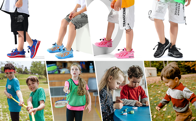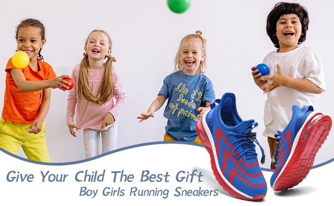 Kids running shoes use knit tennis fabric, comfortable, breathable and lightweight