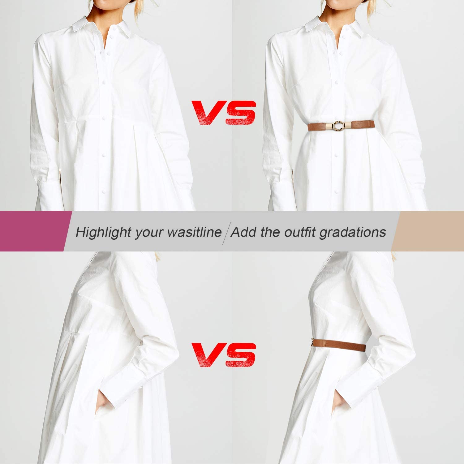 ✨ Metal buckle--- We adopt interlocking metal buckle to emphasize the unique design and easy for use. Golden color makes this belt vintage, and elegant for women dresses, sweater and shirt.