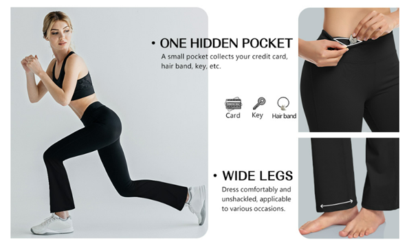 √ 4-WAY STRETCH & SLIGHT FLARE - 4-way stretch material to promote both compression and support. Slight flare at cuffs design to create a leg-lengthening silhouette,giving a streamlined look.