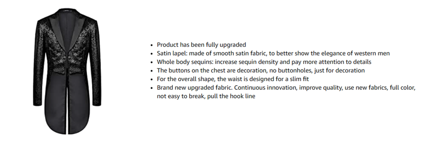 • SUITABLE OCCASION : colorful and shiny blazer, make you understanding in magician event, stage performance, dress, coat, nightclub, bar, host, chorus, conductor, etc.