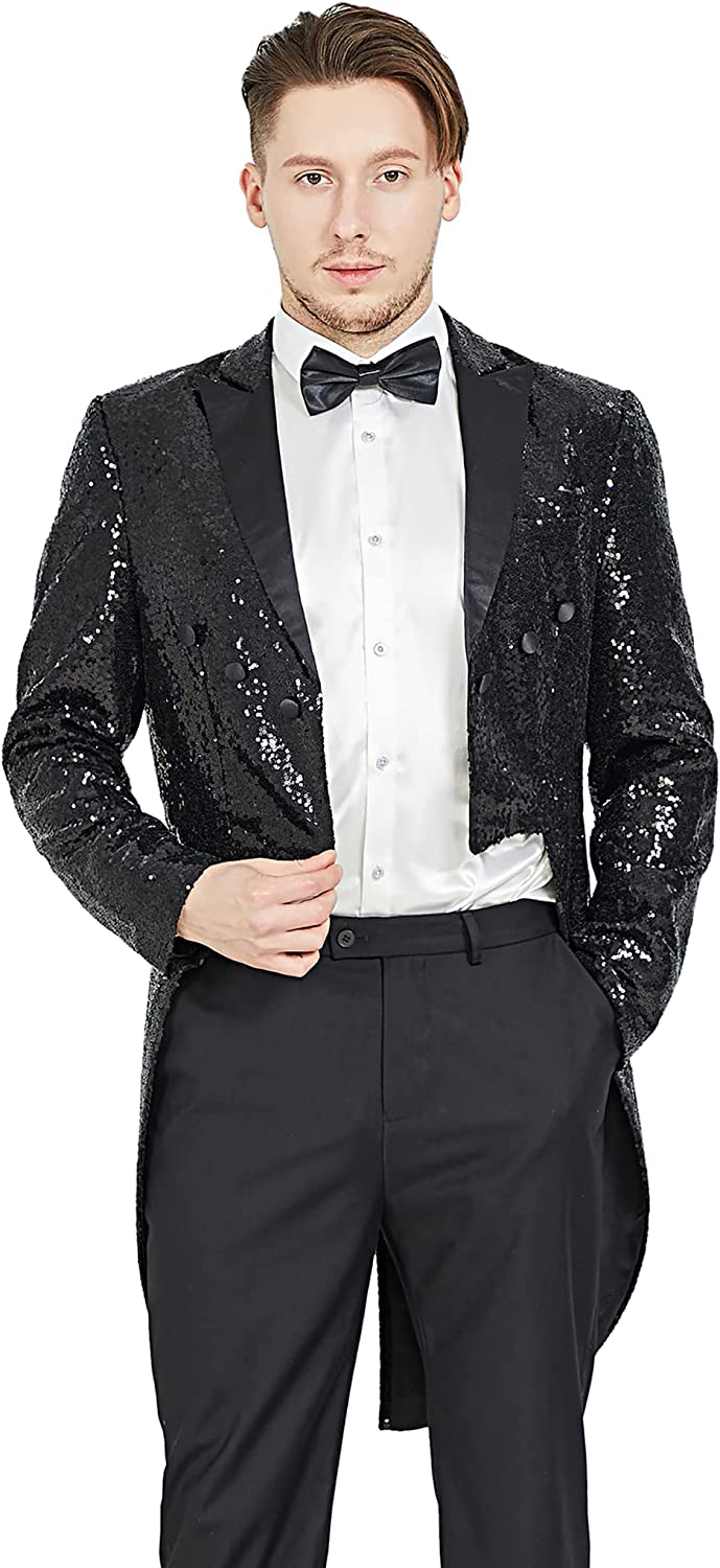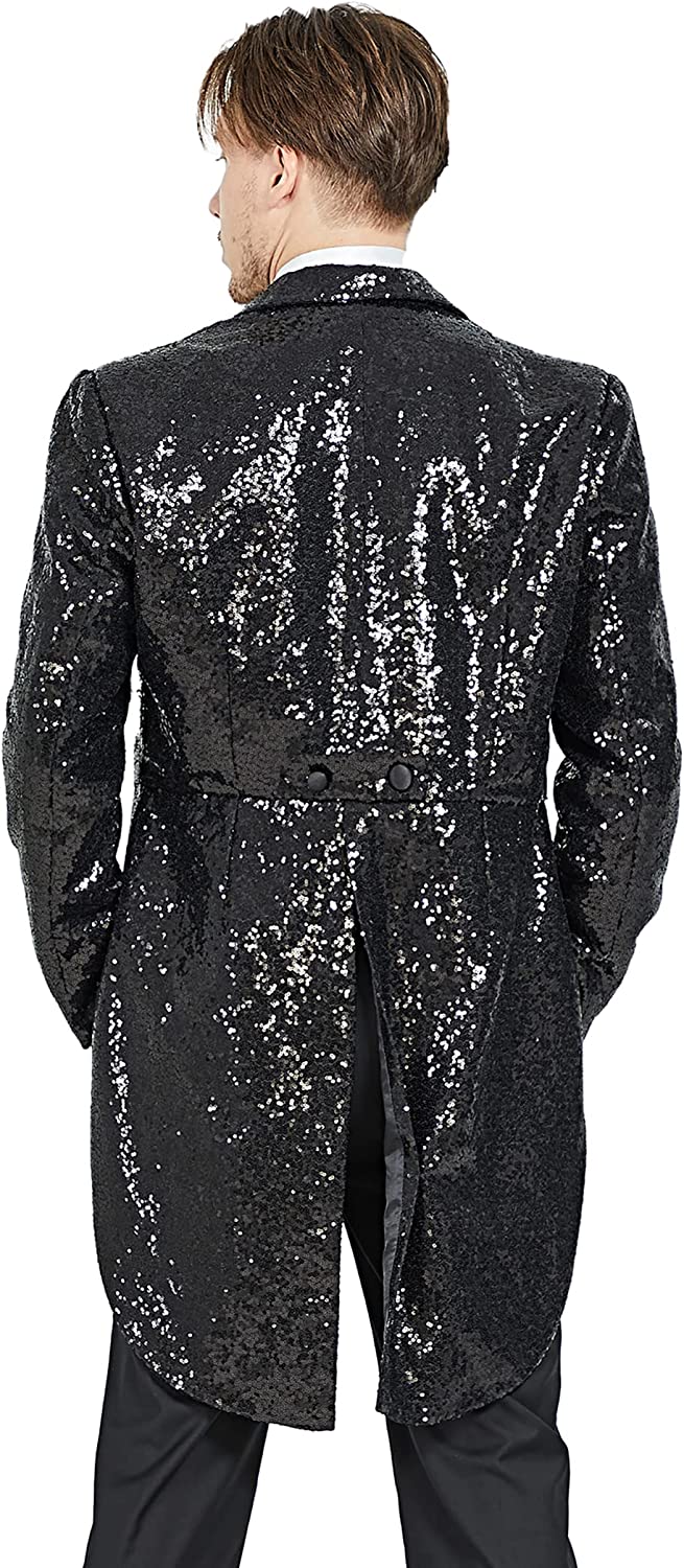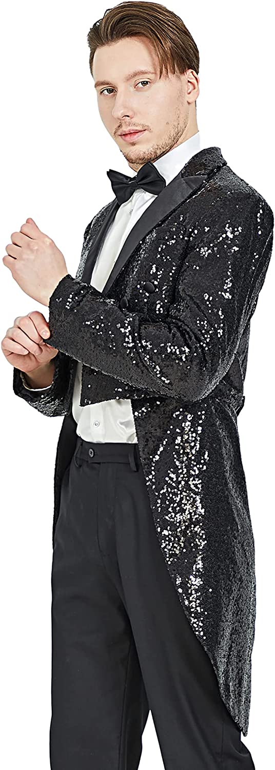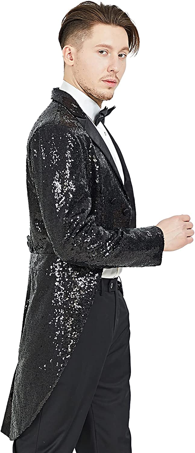 MAGE MALE Mens Sequin Tuxedo Jacket Tails Slim Fit Tailcoat Dress Coat Swallowtail Dinner Party Wedding Blazer Suit Jacket