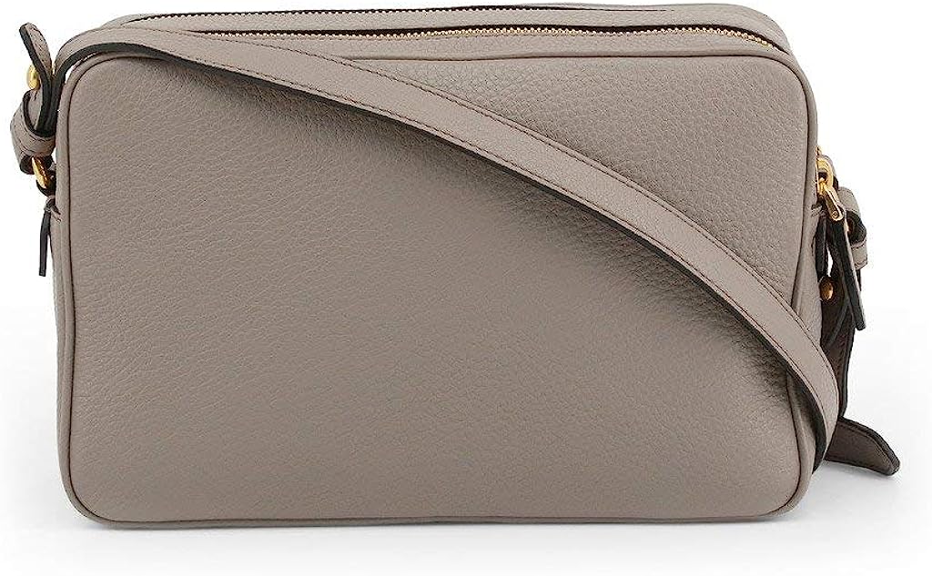 This crossbody bag is crafted with argilla grey vitello phenix leather. The bag features a gold Prada Milano logo on the front and an adjustable leather strap. The two zipper compartments open to a spacious jacquard lined interior that allows for convenient storage and organization. This Prada handbag is great for everyday use with the distinctive quality and style of Prada!
