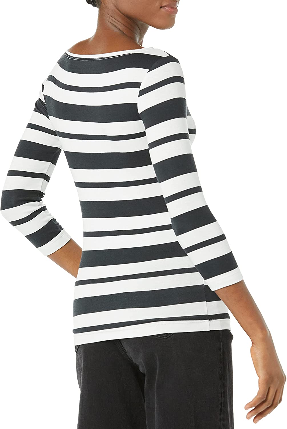 Amazon Essentials Women's Slim-Fit 3/4 Sleeve Solid Boat Neck T-Shirt