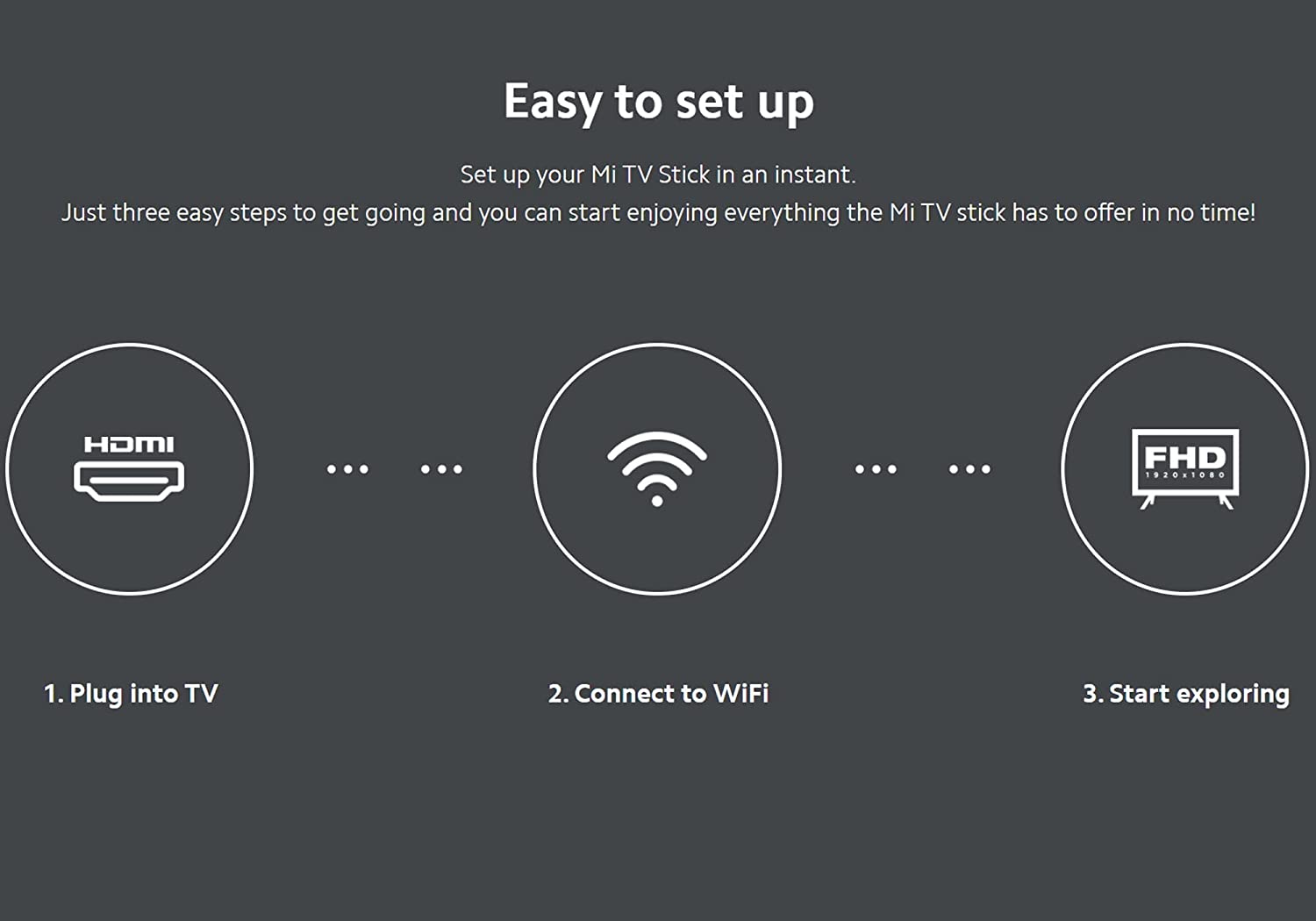 • Easy to set up: Set up your Mi TV Stick in an instant. Just three easy steps to get going and you can start enjoying everything the Mi TV stick has to offer in no time!