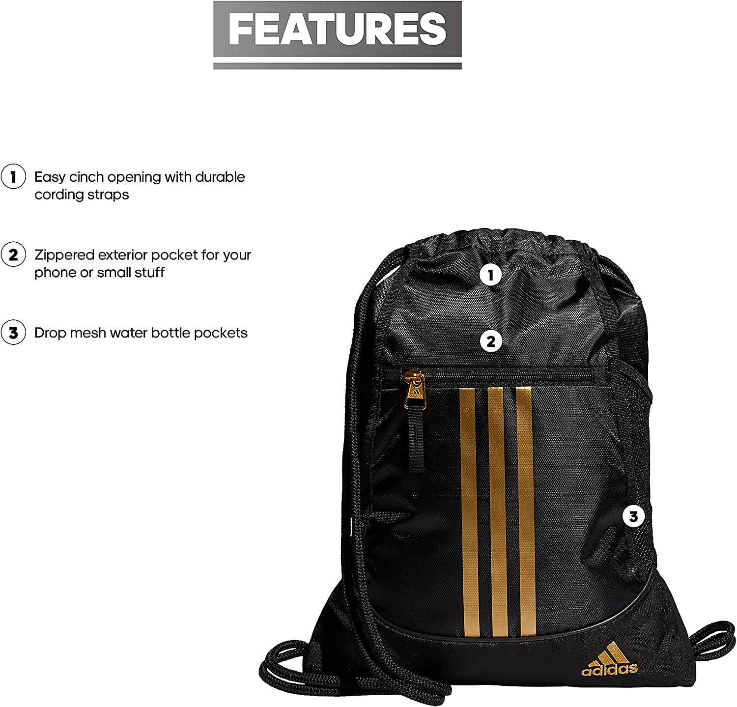 adidas Alliance II Sackpack, Black/Gold Metallic, One Size