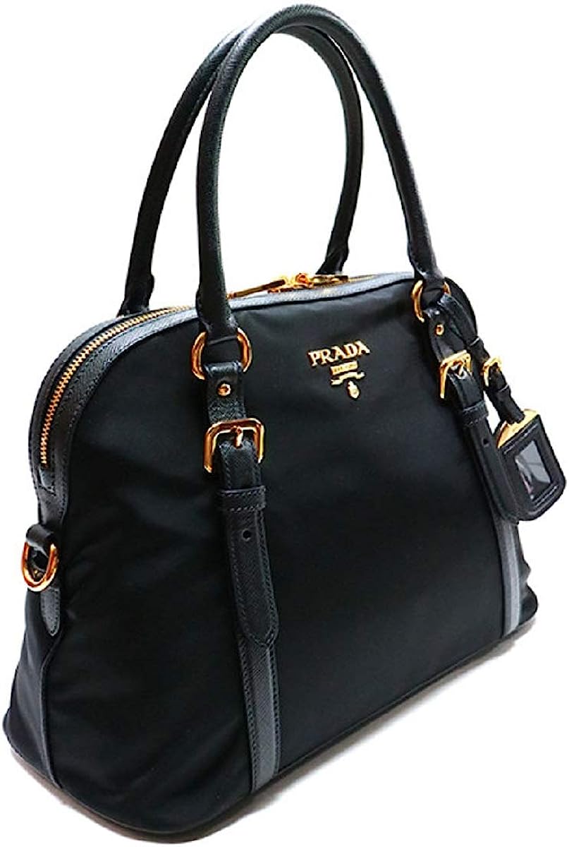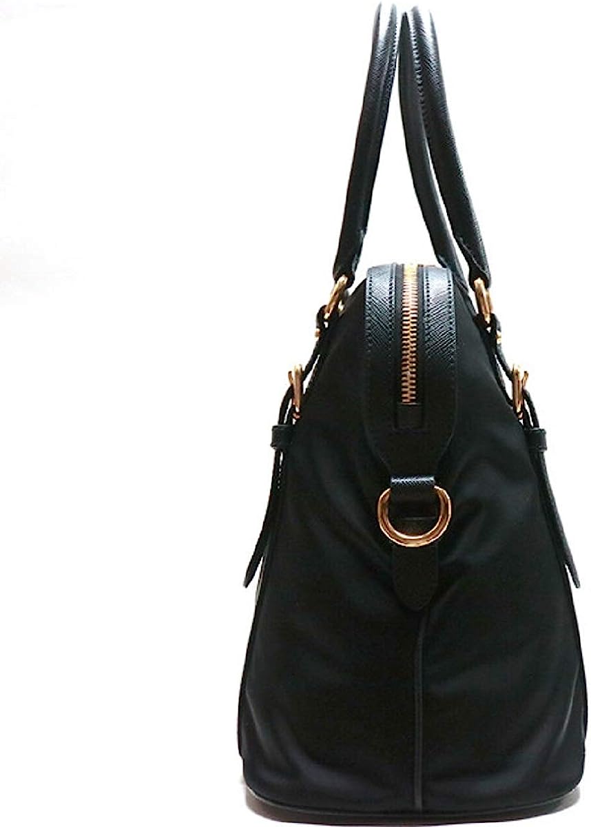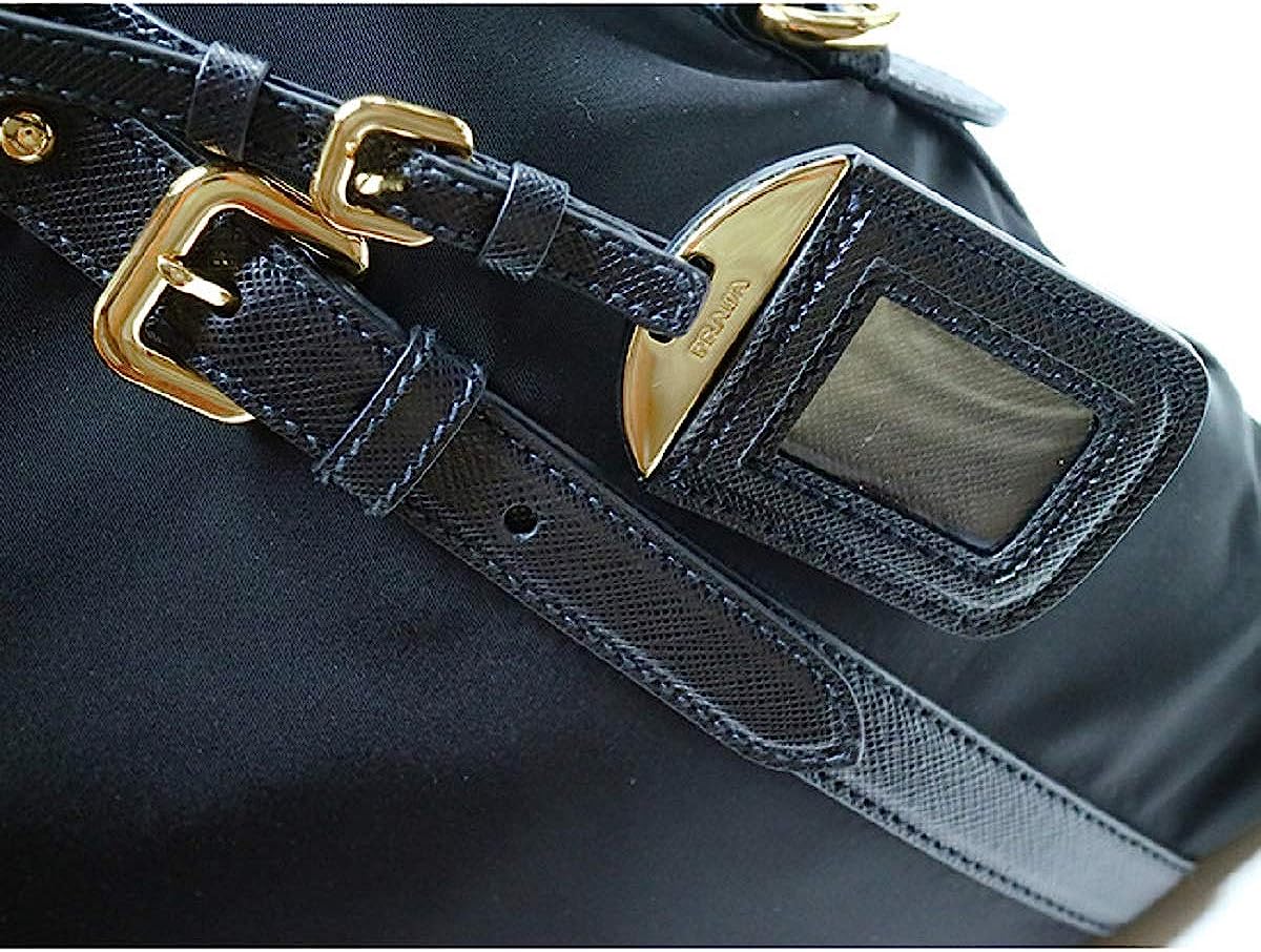 Prada Womens Tessuto Nylon Saffiano Leather Black Handbag 1BB013